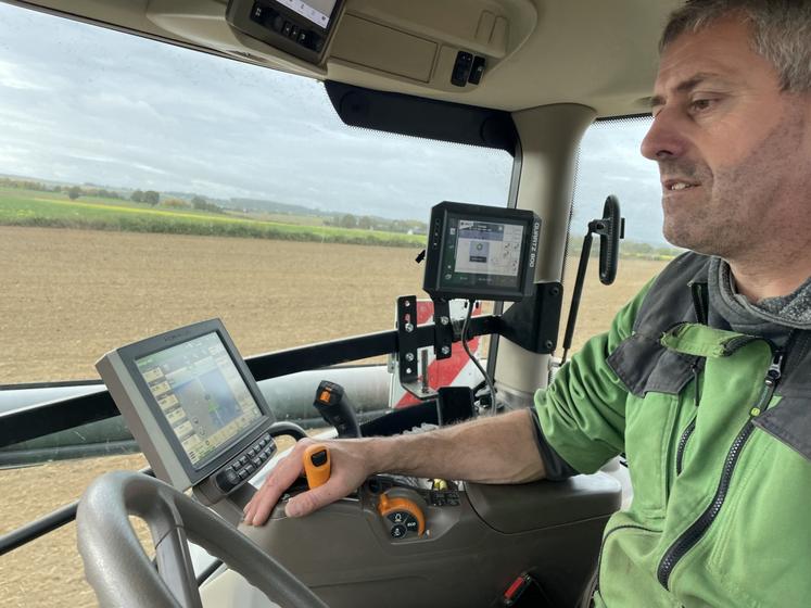 Ce mardi matin, le chauffeur de la Cuma, Jean-Michel Babin, sème une parcelle d'orge fourragère de variété LG Zebra, et le blé tendre, de variété LG Abilène, devait être semé mercredi. Lui aussi apprécie de travailler enfin dans des conditions favorables, après deux années de semis d'automne plutôt pénibles : "c'est un bonheur cette année !". Jean-Michel Babin attaque donc sa 16ème saison de semis à la Cuma avec le sourire.